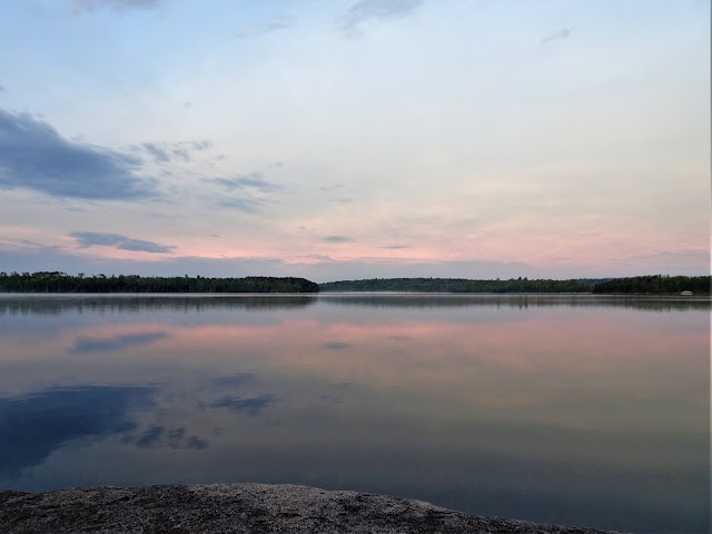 As we enjoyed our last full day in camp, we talked about how it really didn't feel like we'd been in the BWCA 9 days already. We talked about how Day 10 would be a big day: 7 portages, 2 beaver dams and nearly 15 miles of paddling and portaging to exit the BWCA. Before long, the sun began to fall from the sky providing amazing views to the west directly across the lake from camp.